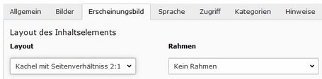 Damit die Bildausschnitte für die Kacheln schneller definiert werden können, wurde dem Bildausschnittsdialog die Seitenverhältnisse 2:1 und 1:2 hinzugefügt. Zur optimalen Bildausgabe können die Bildgrössen skaliert werden (siehe Seite Inhaltselemente-Bilder).